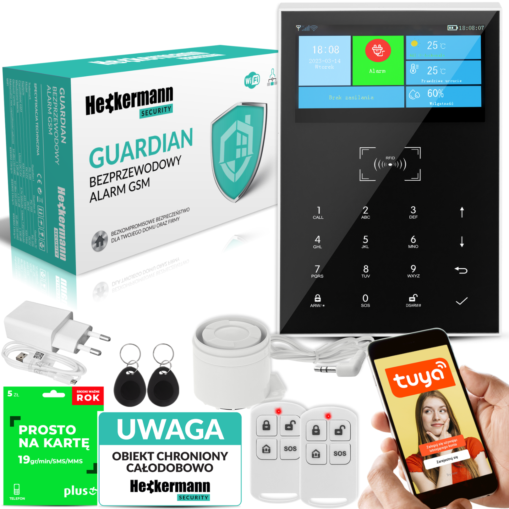 Alarm GSM Heckermann Guardian VI Tuya BOX + Tabliczka + SIM