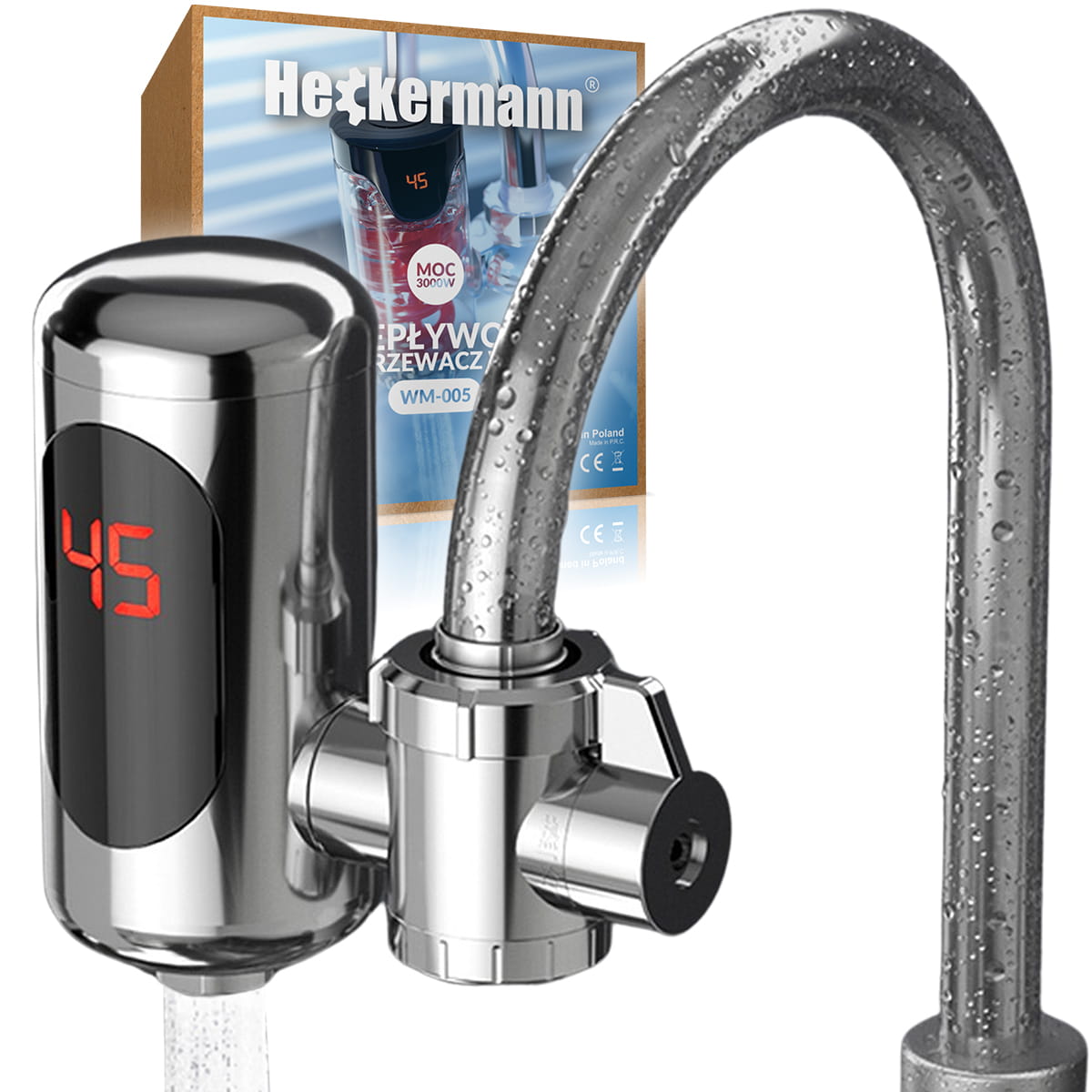 Przepływowy elektryczny podgrzewacz wody Heckermann WM-005 3kW