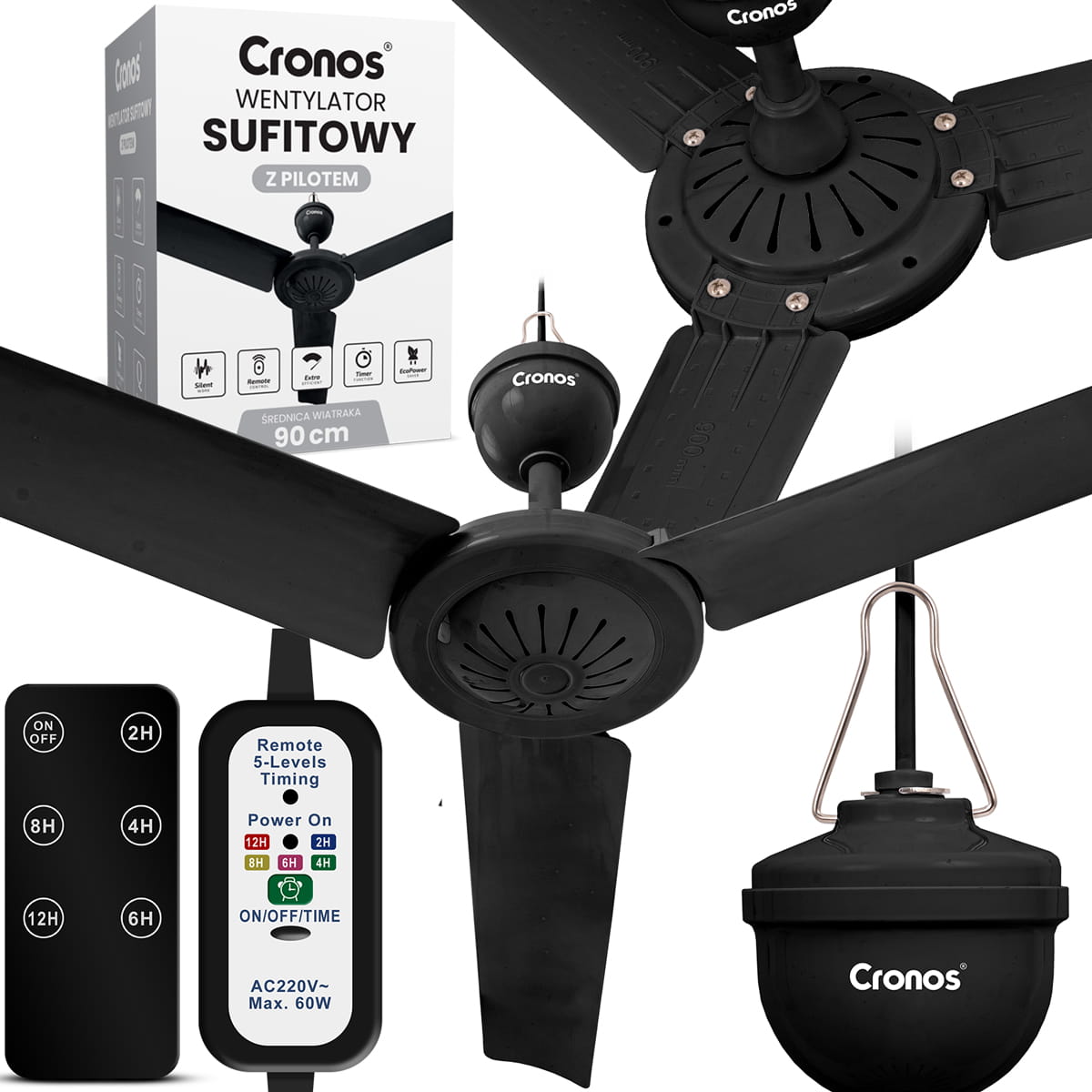 Wentylator sufitowy Cronos FC11-90 90cm Czarny + pilot