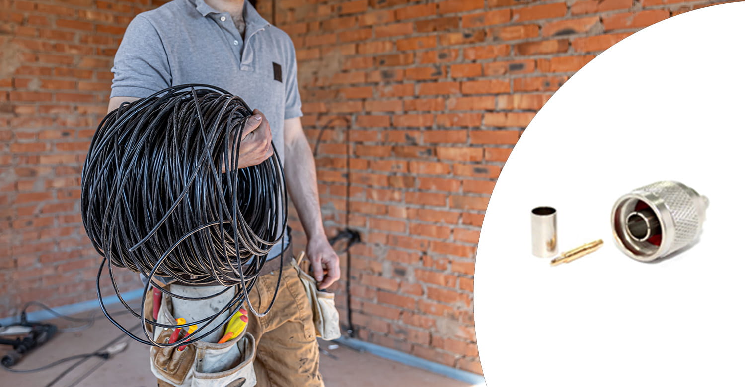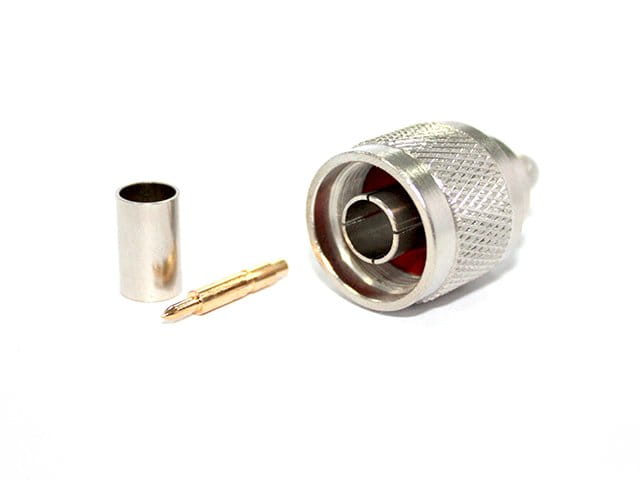 Wtyk N męski do przewodu SFR400/H1000/7D-FB, srebrny, złącze do komunikacji i transmisji sygnałów wysokiej częstotliwości, z zestawem akcesoriów montażowych