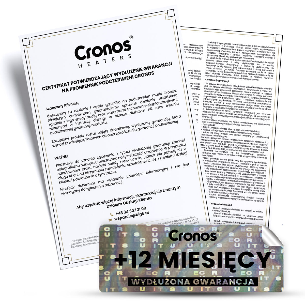 Wydłużona Gwarancja - 12 miesięcy do promiennika CGP-900TWP