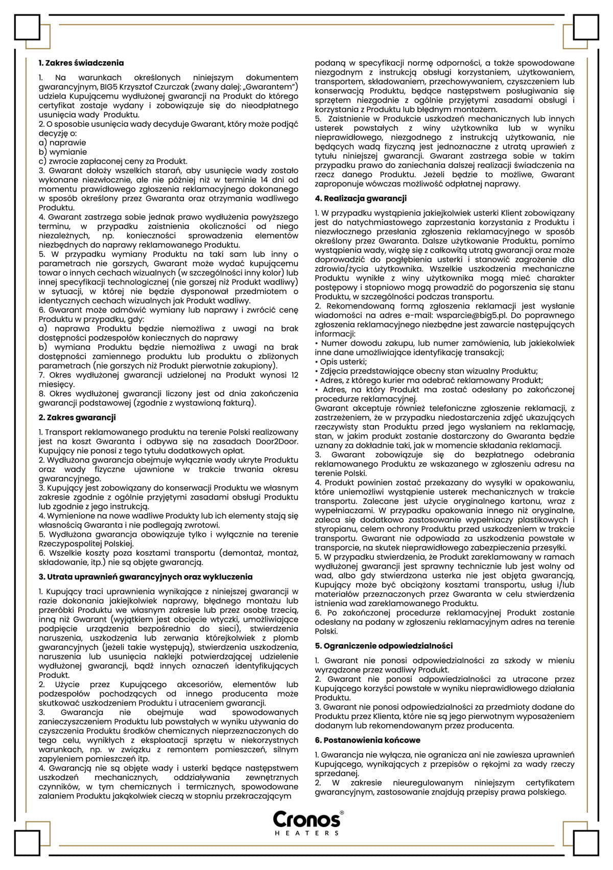 Wydłużona Gwarancja - 36 miesięcy do promiennika CRP-500TWP