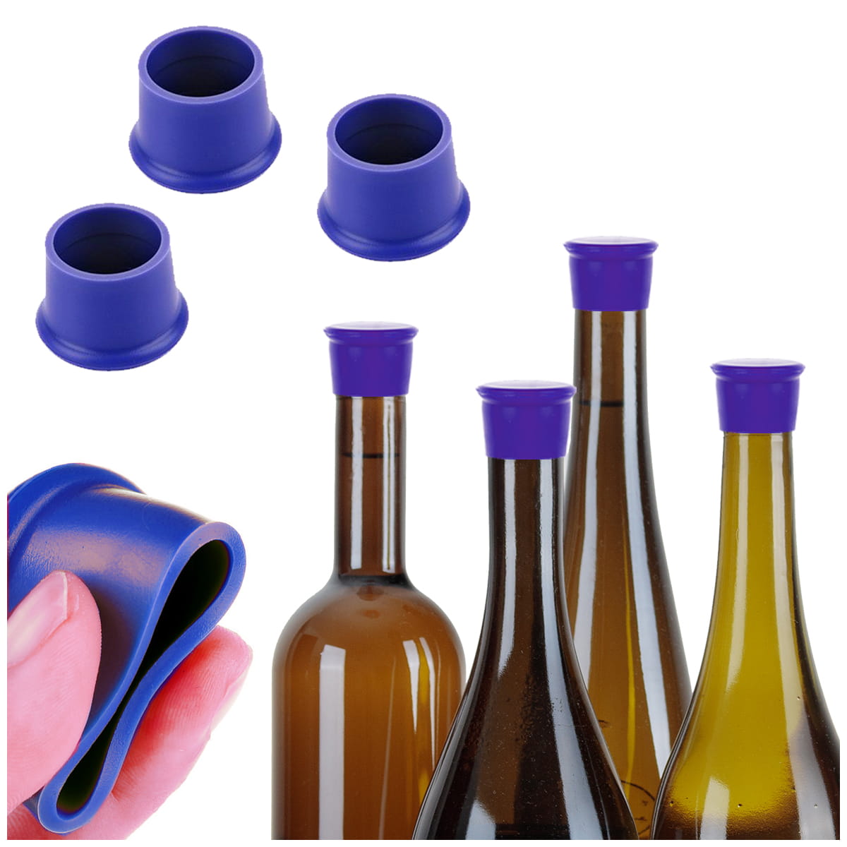 Zestaw 3x Zatyczka silikonowa korek do butelek NIEBIESKA