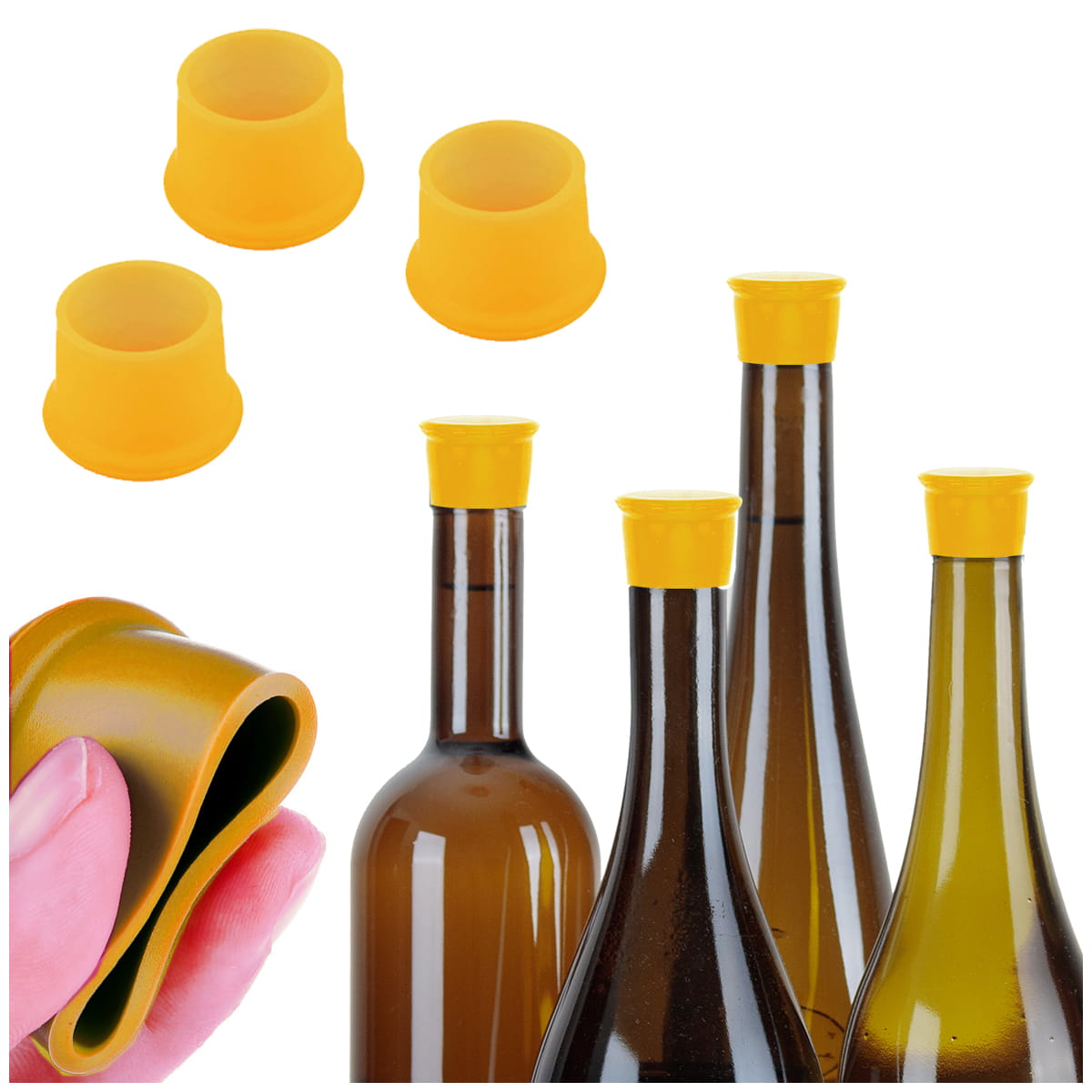 Zestaw 3x Zatyczka silikonowa korek do butelek ŻÓŁTA