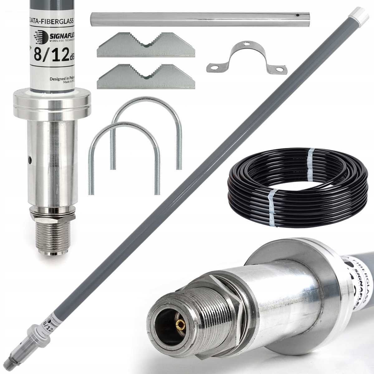 Zestaw Antena dookólna Fiberglass 30cm Nż + Konektor 10m Nm