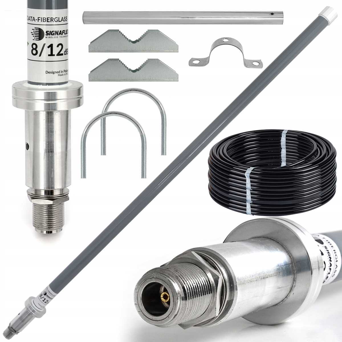 Zestaw Antena dookólna Fiberglass 30cm Nż + Konektor 15m Nm