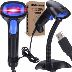 Zestaw Przewodowy czytnik skaner kodów kreskowych 1D Heckermann YHD-1100 + Stojak