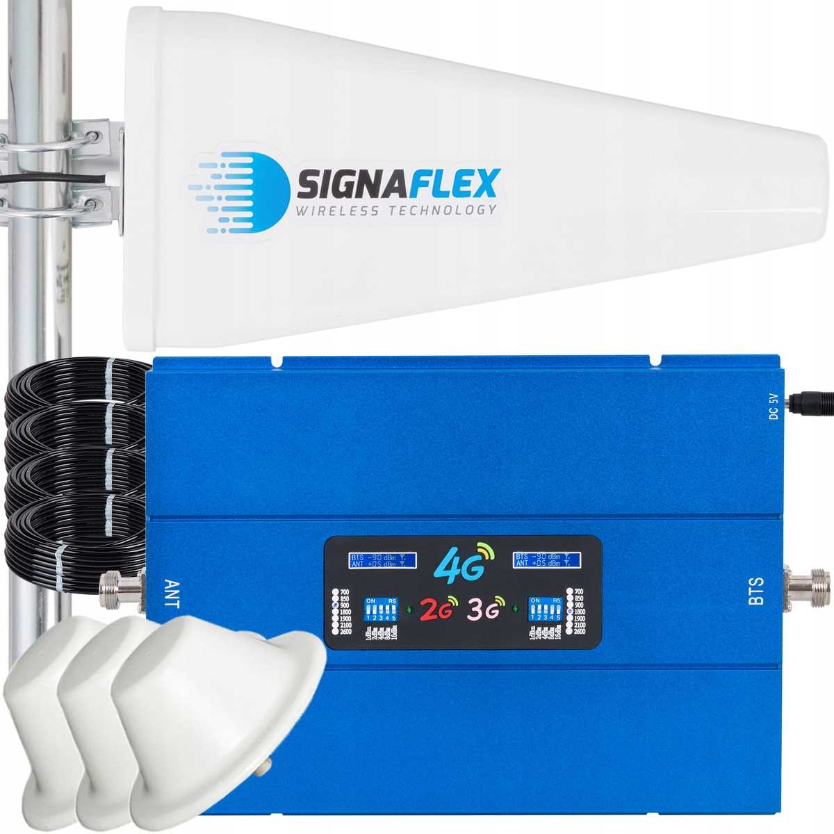 Zestaw Wzmacniacz EGSM/4G BLUE C10 + T1 20dBi 10m + 4x Grzybek