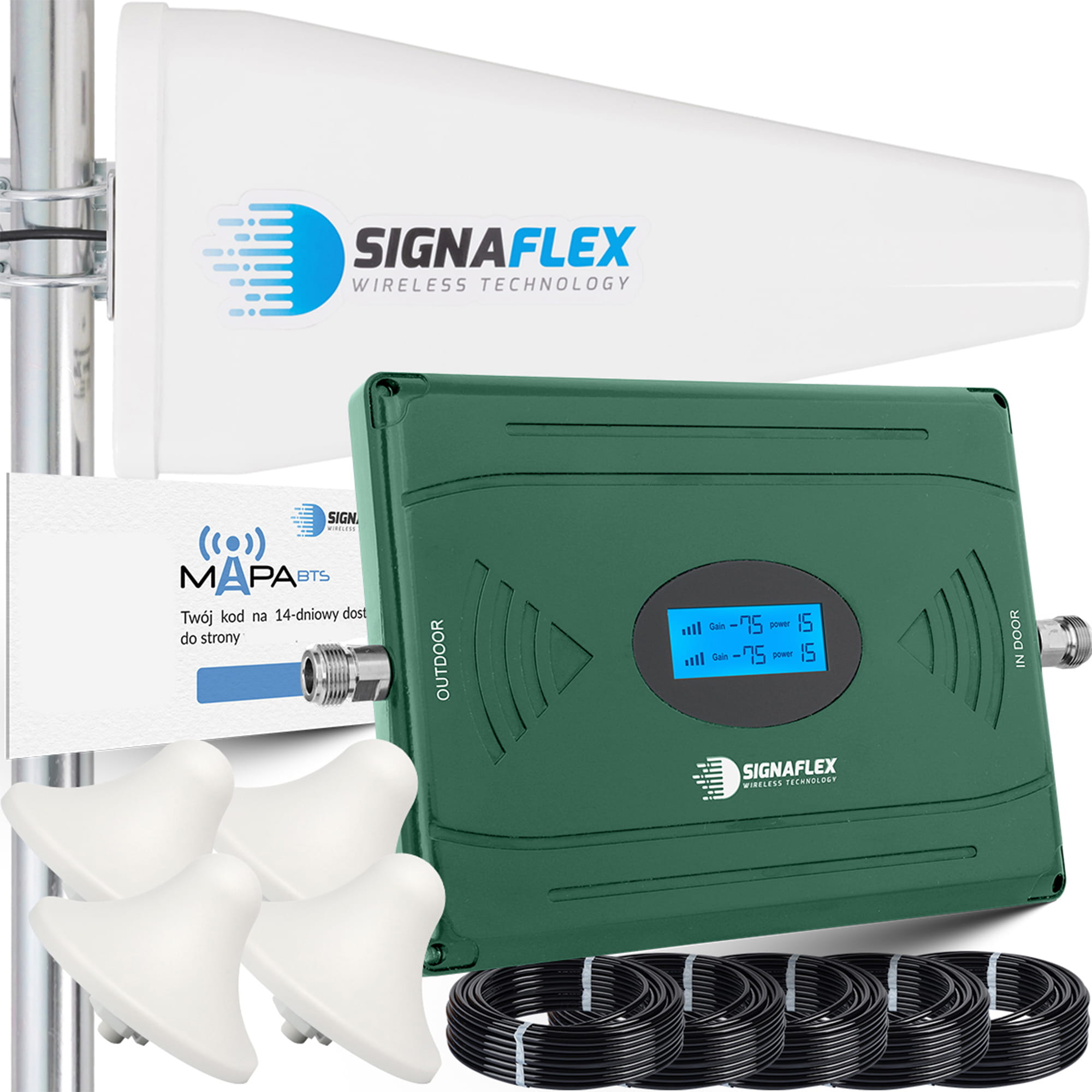 Zestaw Wzmacniacz EGSM/DCS LS-EG11 AGC + T1 20dBi 10m + 4x Grzybek