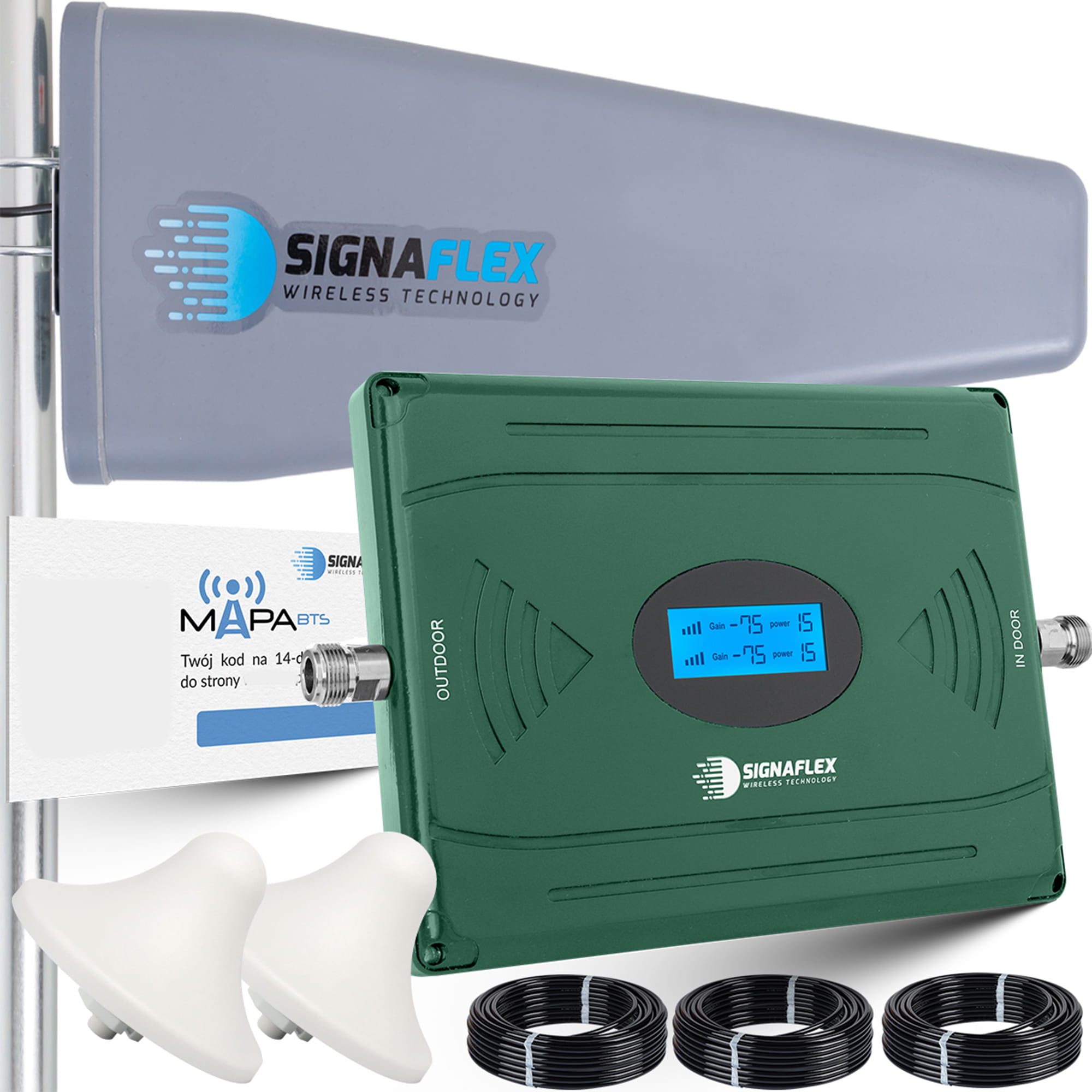 Zestaw Wzmacniacz EGSM/DCS LS-EG11 AGC + T2 23dBi 10m + 2x Grzybek