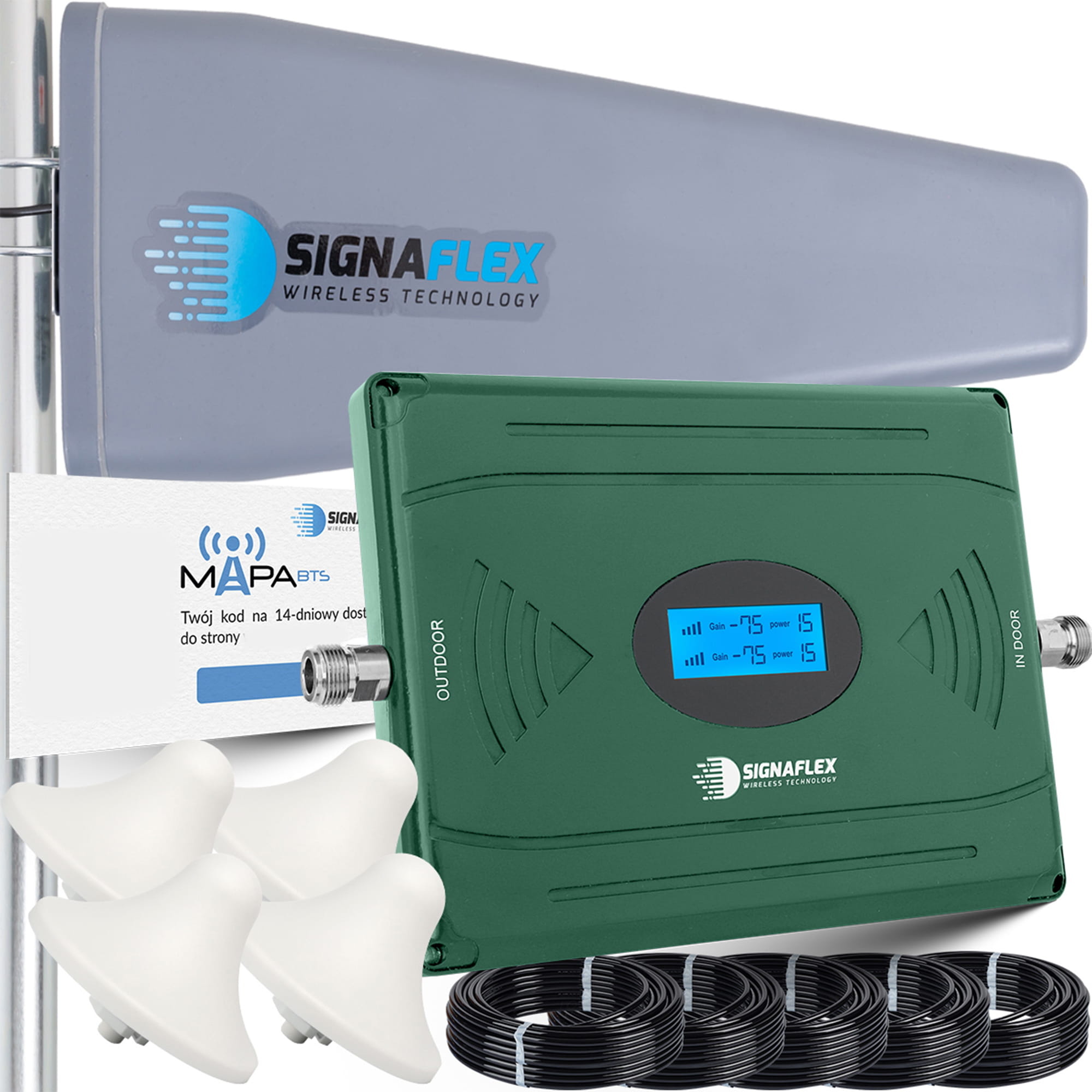 Zestaw Wzmacniacz EGSM/DCS LS-EG11 AGC + T2 23dBi 15m + 4x Grzybek