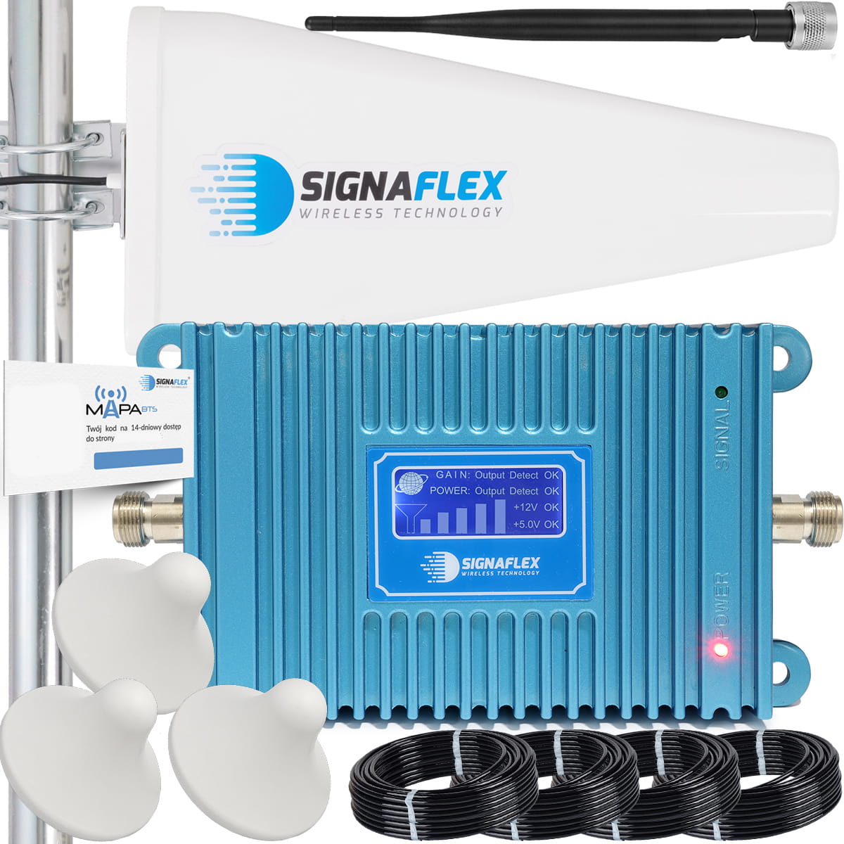 Zestaw Wzmacniacz GSM Blue LCD GSM980 + T1 20dBi 10m + 3x Grzybek