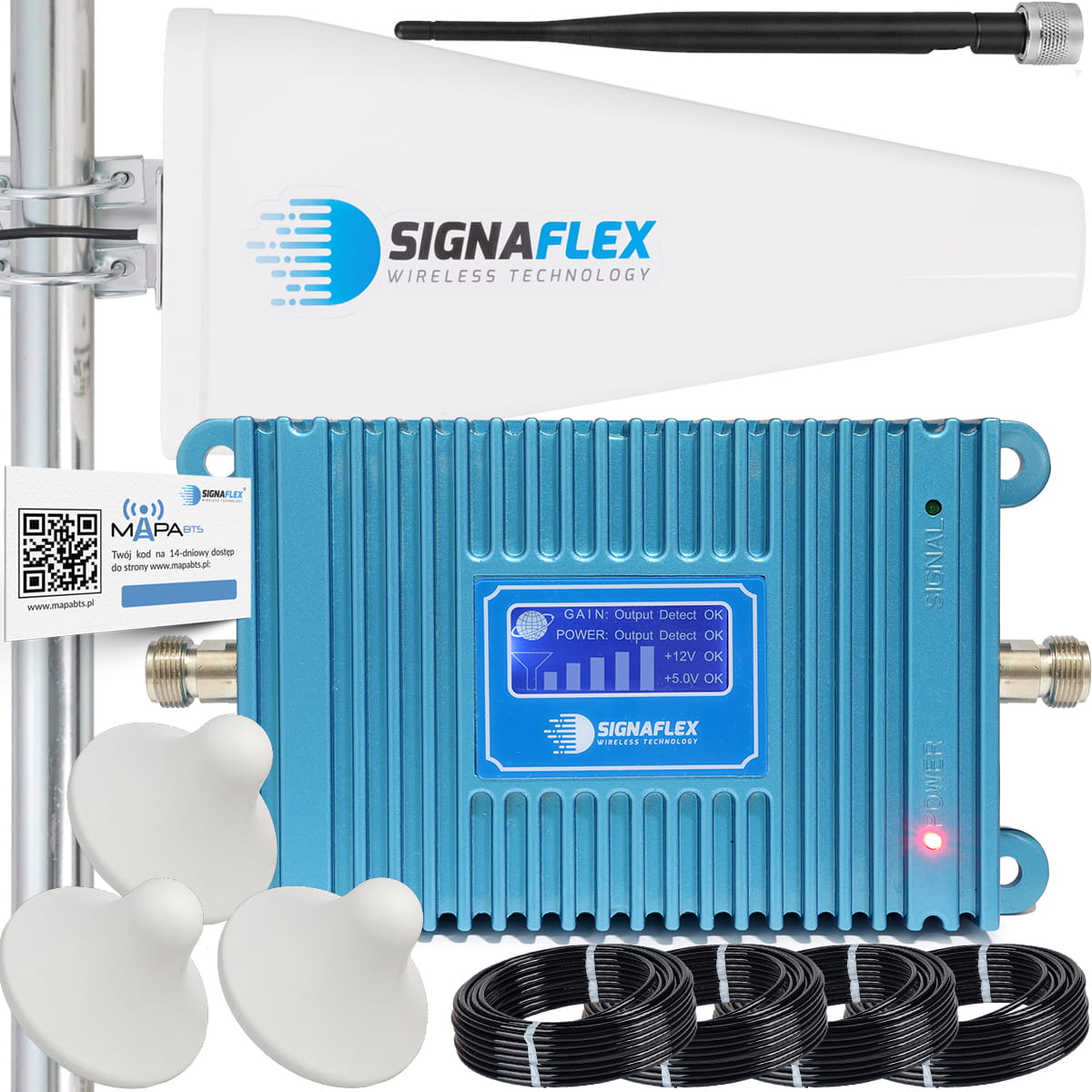 Zestaw Wzmacniacz GSM Blue LCD GSM980 + T1 20dBi 15m + 3x Grzybek
