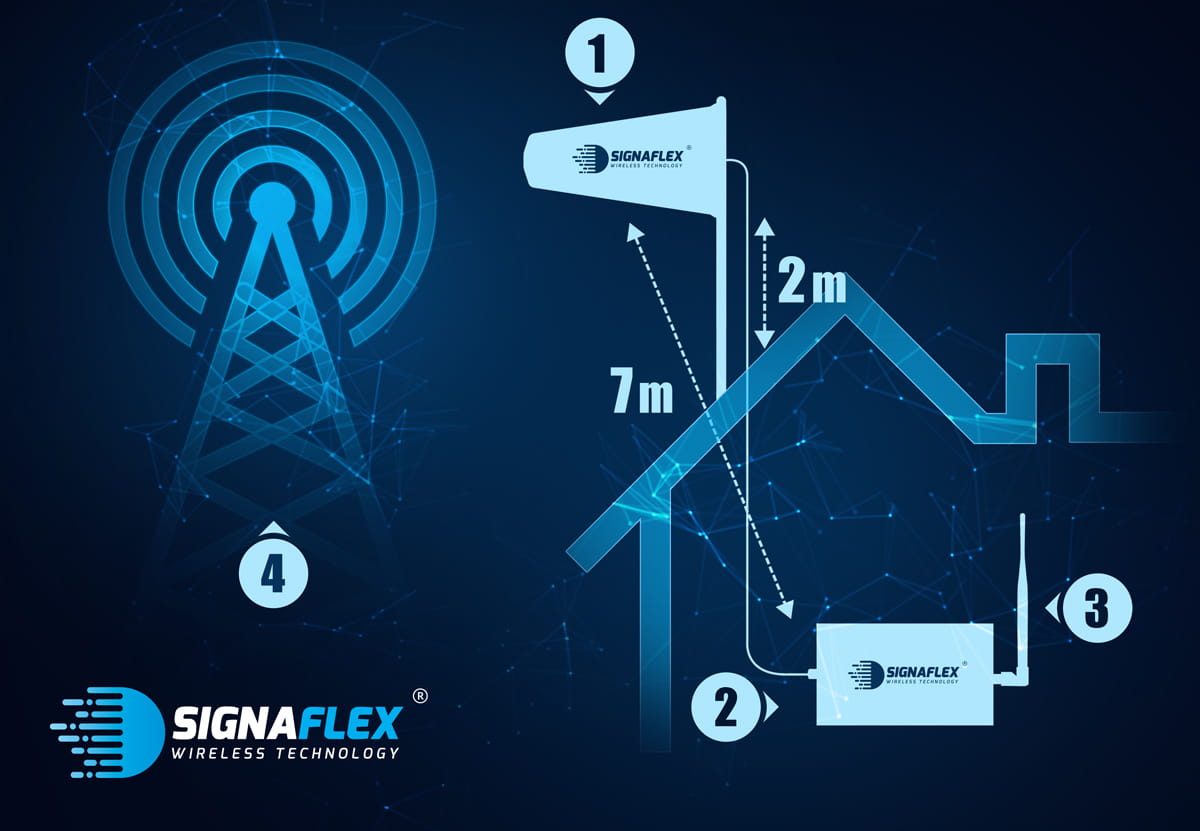 Zestaw Wzmacniacz GSM Silver LCD Black + T2 23dBi 10m