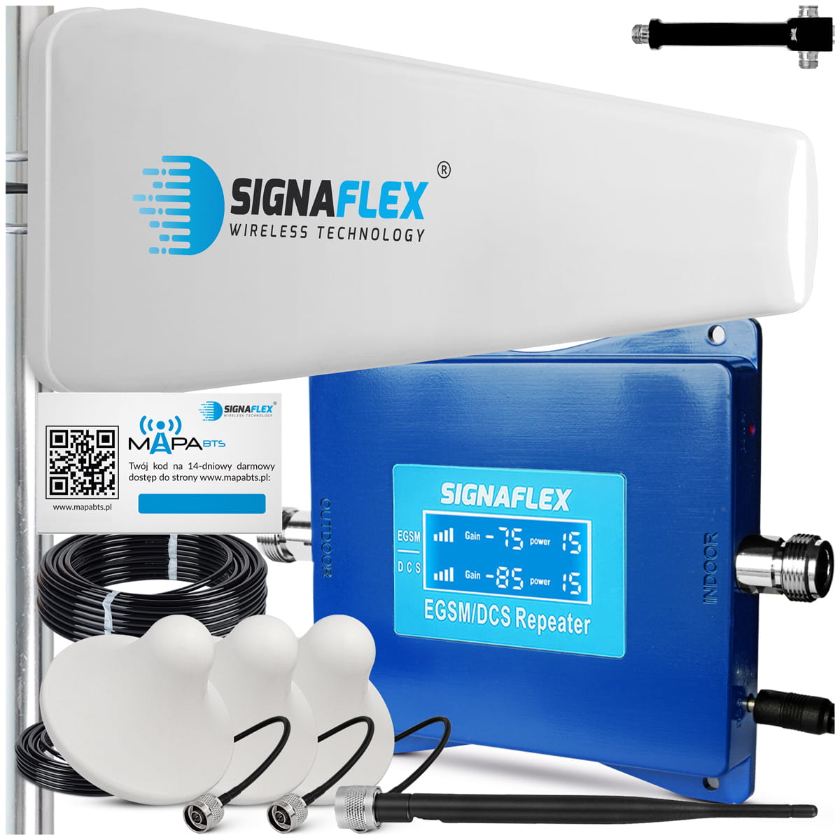 Zestaw Wzmacniacz Signaflex EGSM/DCS BLUE LS-EGD10 + T1 20dBi 15m + 3x Grzybek