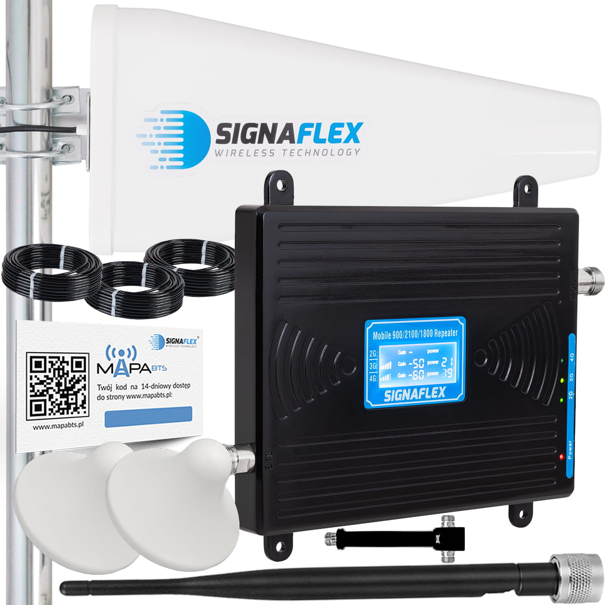 Zestaw Wzmacniacz Signaflex GSM/UMTS/DCS BLACK LCD LS-GDW2 + T1 20dBi 15m + 2x Grzybek