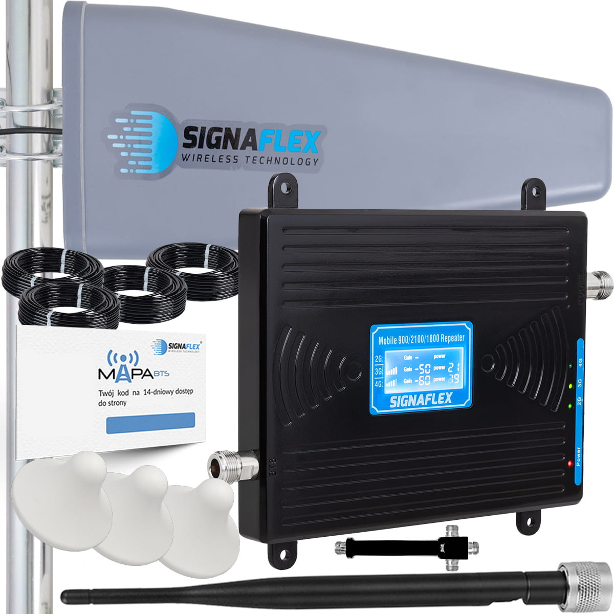 Zestaw Wzmacniacz Signaflex GSM/UMTS/DCS BLACK LCD LS-GDW2 + T2 23dBi 10m + 3x Grzybek