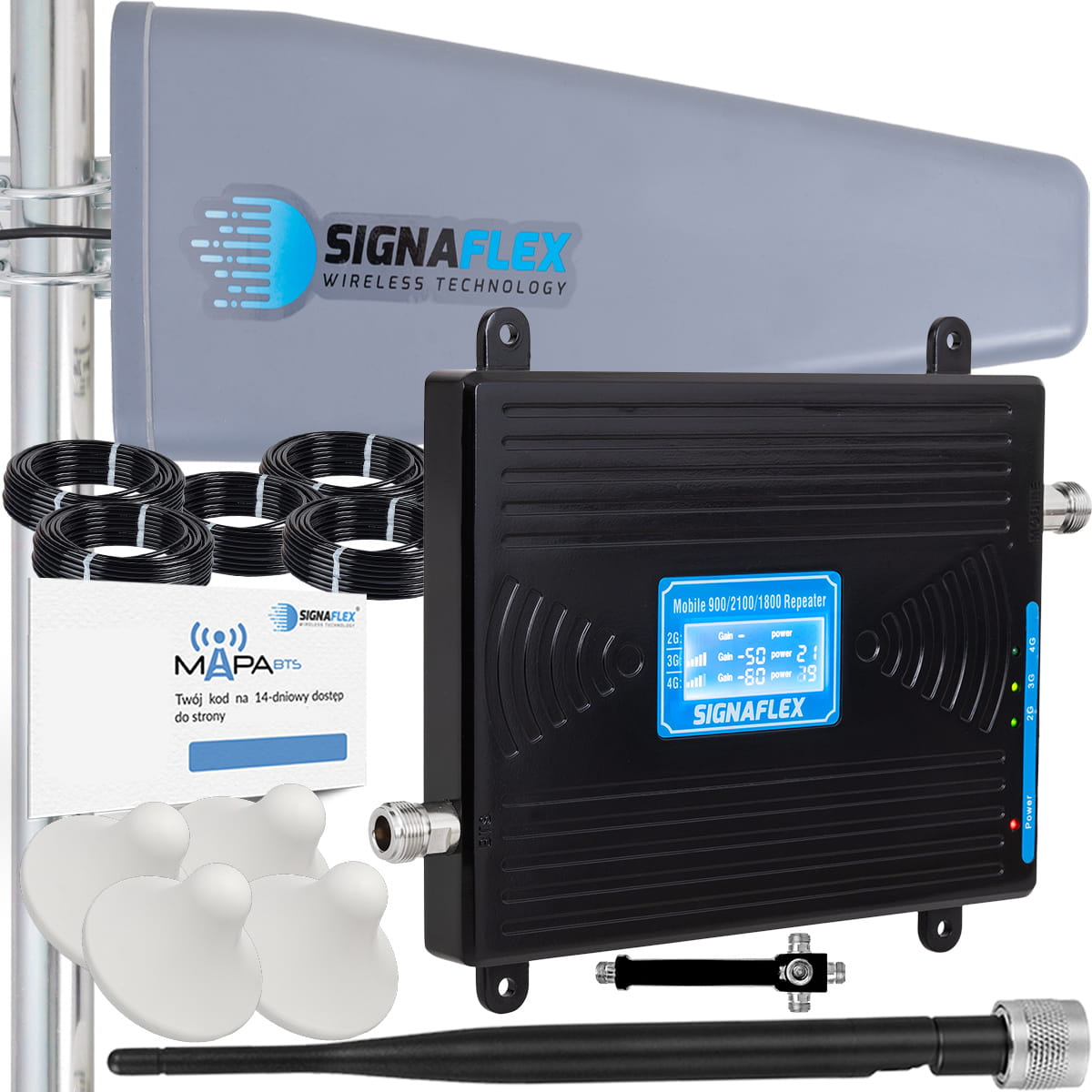 Zestaw Wzmacniacz Signaflex GSM/UMTS/DCS BLACK LCD LS-GDW2 + T2 23dBi 10m + 4x Grzybek