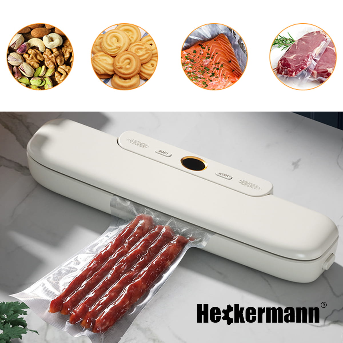 Zestaw Zgrzewarka próżniowa Heckermann JL-VS8808 Biała + Folia 20x600cm