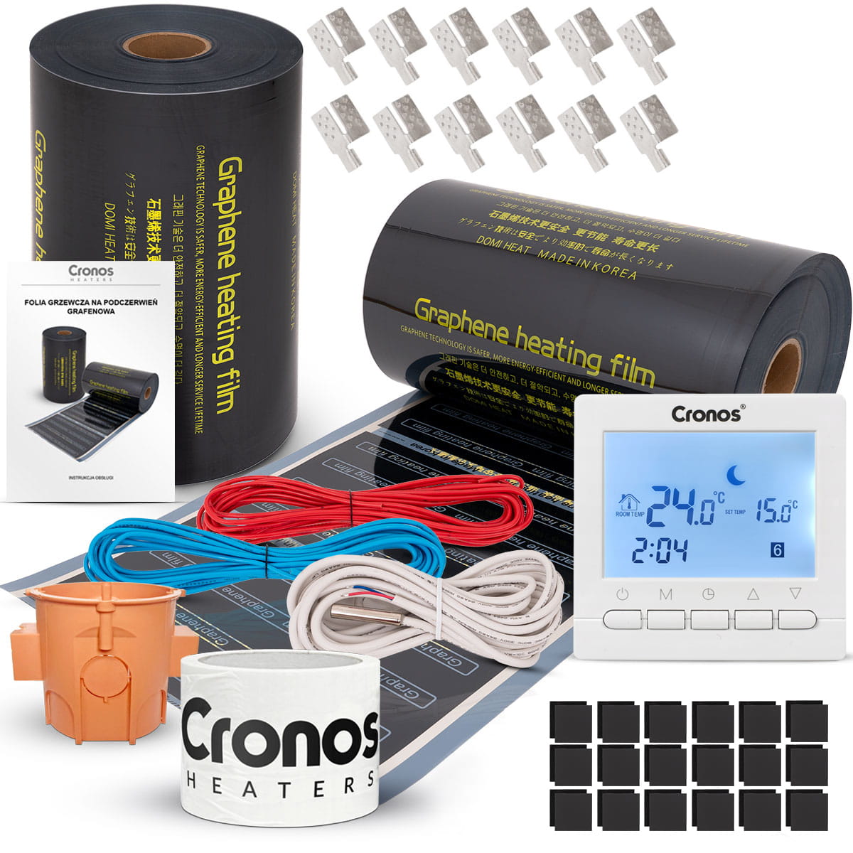 Zestaw folia grzewcza IR Cronos GRAPHENE 140W/m2 100cm - 21m2 + termostat 306